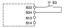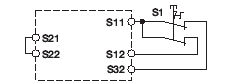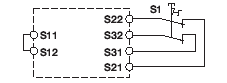 如果是雙通道不檢測觸點間短路故障工作方式的話則是短接S21和S22,兩個常閉觸點分別置于S11和S12,S11和S32之間。