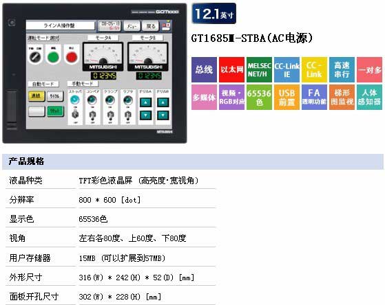 GT1685M-STBA | 12.1寸SVGA,65536色,AC電源,可擴(kuò)展視頻和RGB | 常用 |