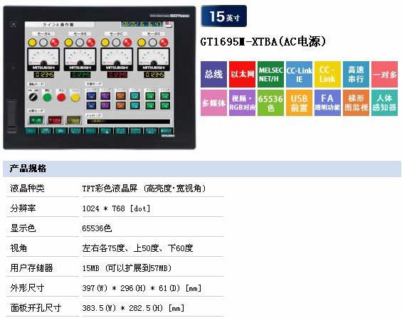 GT1695M-XTBA | 15寸XGA,65536色,AC電源,可擴(kuò)展視頻和RGB | 少用 |